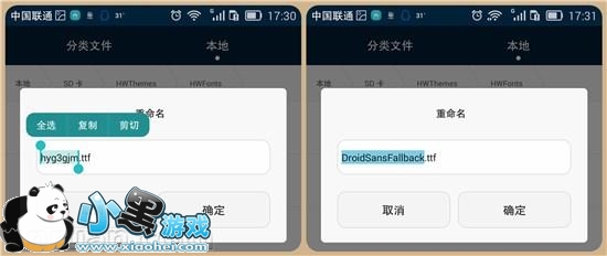 3,复制完成后,长按下载字体,重命名,复制文件名,然后把下载的字体删除,长按自己下载的字体,重命名,粘贴,注意(粘贴后,最后面有一个空格,需要删除)