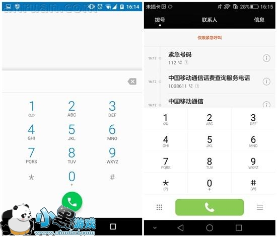 图片中可以看出,原生的界面比较简洁,只有最基本的拨号功能,而EMUI则包含了黄页、录音、备忘录等一系列功能。