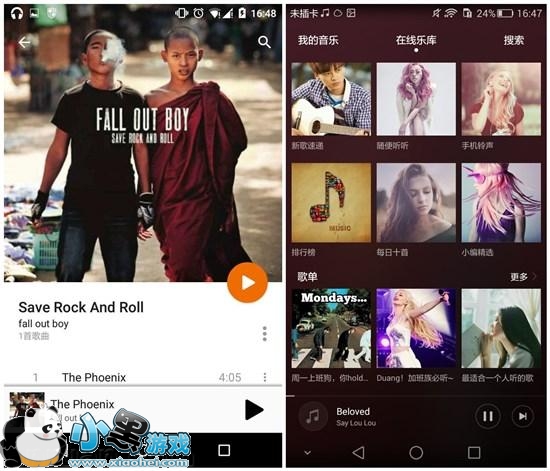 原生的音乐只能播放本地音乐,功能相对EMUI相差太多。