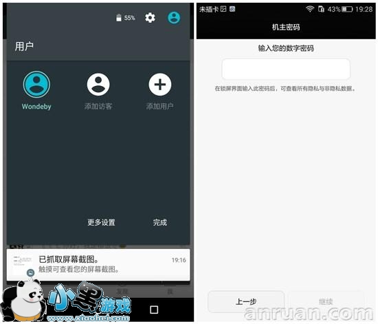 这也是注重隐私的用户非常在意的一个功能,原生只要下拉状态栏即可进入访客界面设置。而EMUI需要在设置界面-安全-隐私保护里面才能开启。