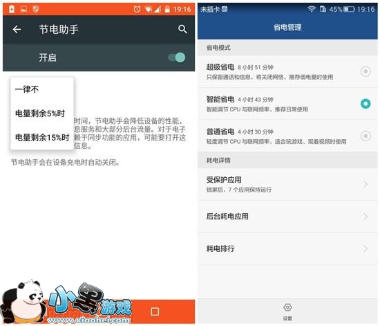安卓5.0之后,谷歌加入了电池节电功能,就是当电量不多时会自动开启省电功能。不过相比EMUI的省电管理,原生的功能就简陋了很多。