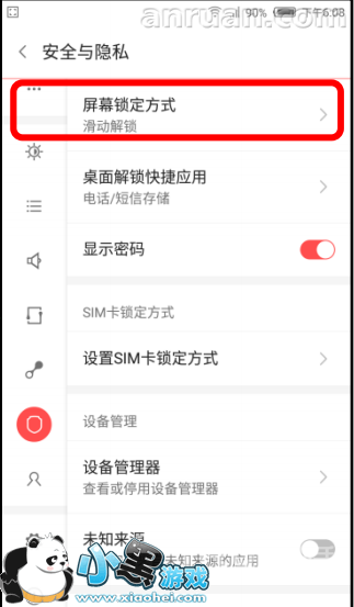 4.取消手机的“图案解锁”“数字密码解锁”“混合密码解锁”等屏幕锁,如图