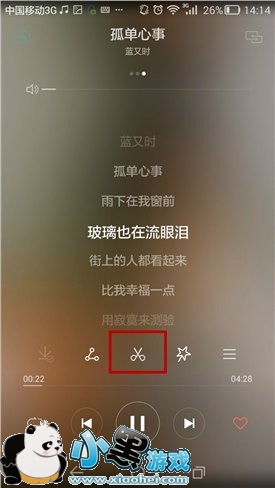 把自己喜欢的歌曲作为手机铃声是再正常不过的事了,但是不是找不到这首歌的铃声就是自己根本就不喜欢铃声的片段,不如就索性自己做出自己喜欢的吧,音乐随心裁,随时随地做出个性铃声,进入歌曲界面,点击音乐随心裁的小标志即可。