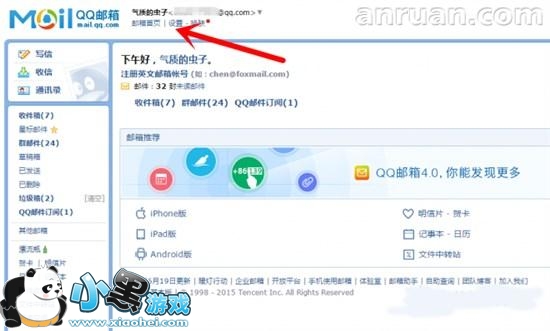 1、打开邮箱首页并登陆邮箱,我们能看到图中的‘设置’,点击跳转到新页面。