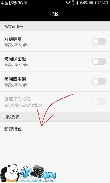 5、无论你设置过或者没有设置过数字或混合密码,现在你都可以来设置指纹密码了。点新建指纹。首先,先按一下指纹验证区来开始设置。