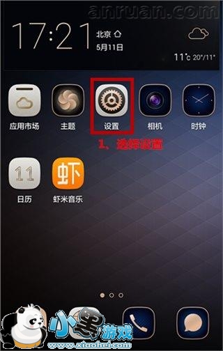 操作步骤一:按照正常的解锁密码进行手机解锁,点击主屏界面上“设置”。