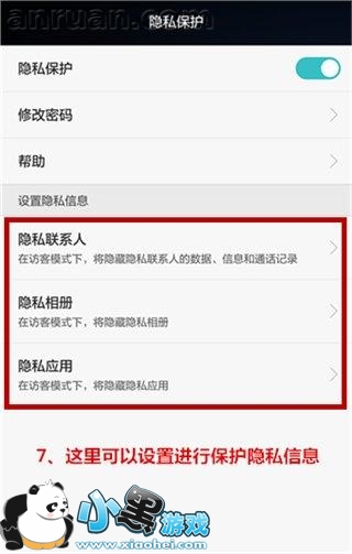 操作步骤七:开启隐私保护,现在我们可以选择隐私联系人、相册、应用。