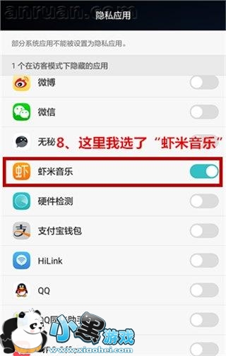 操作步骤八:我选择了隐私应用中的“虾米音乐”。