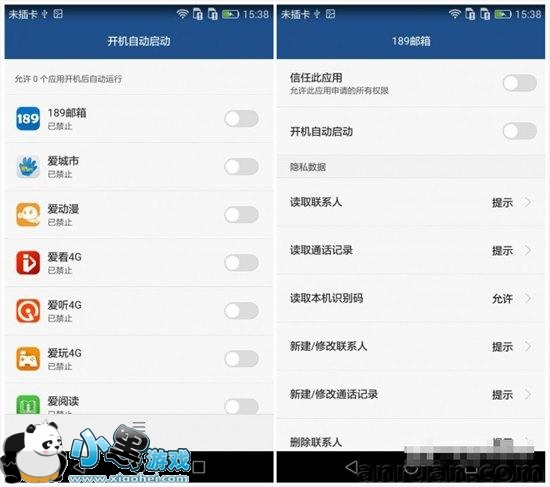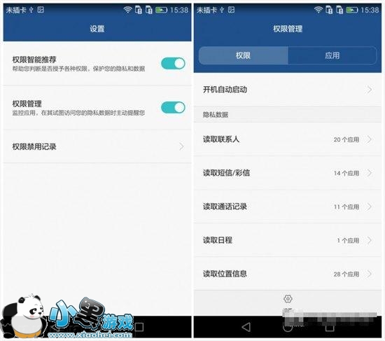 此项共能是专门用来管理手机软件的各种权限的。当手机里的软件过多,当打开软件时提示的某某权限必须给予,在权限管理里可以一一管理,这种有规则性的管理可以确保手机不被个别软件读取太多内容。