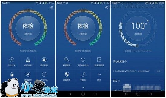 首先来看下图片吧,显而易见的可以看出所增加的几项功能。中上方的体检扫描还是没有变,大方得体,没事儿扫一扫来保证手机持久健康无毒。