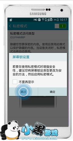 10屏幕提示【屏幕锁设置】,您可以根据需要选择【跳过】或【确定】