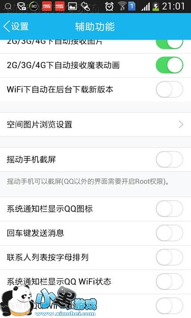7、通用方式:按住休眠键(电源/开关/锁机键/音量下键)的同时按功能键,或者自己下载截屏软件,通过QQ找到设置里的辅助功能可以进行摇动手机截屏但qq以外的界面需要进行root。