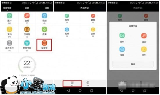文件管理——保密柜——立即启用,可以选择自己不想要被别人看到的文件设置密码,可以选择图片、音频、视频和文件项目。选择保密柜储存位置,设置好密码以及安全问题,然后选择自己想要被保密的文件,移入就完成了。
