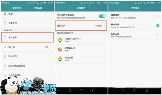 打开设置,定位服务,定位模式,里面有三种模式,分别是准确度高,耗电量低,仅限设备。