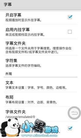 然后在设置选项卡中选中字幕如上图,然后点击“字幕文件夹”,选择中自己字幕所放的位置,播放视频即可。