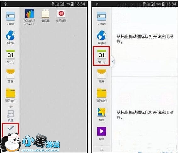 4、长按需要添加至多窗口中的应用程序,移动到多窗口列表中,松手即可,此处以拖动【S 日历】为例。