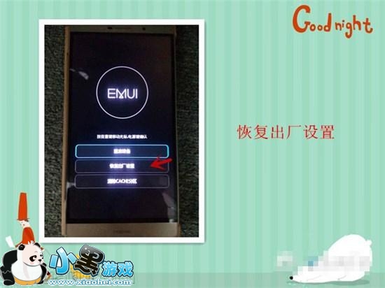 2)、按音量下键选择第二条“恢复出厂设置”,按电源键确认。