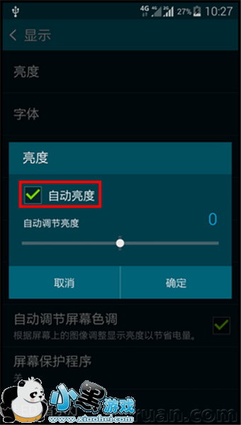 5.将自动亮度的勾选即可,如果不想要自动亮度,再勾选即可