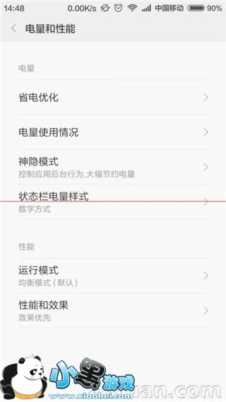 4、接下来,在电量和性能设置选项下,找到“神隐模式”选项,进入神隐模式的设置项。