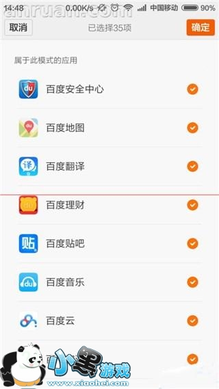 6、在神隐模式设置项中,点击“应用配置”选项,然后选择属于神隐模式的应用,这样,当进入神隐模式之后,在该应用列表中的这些应用在后台运行时,将无法联网和使用GPS功能,从而可以大幅度节省电量,小伙伴们赶快试试吧。