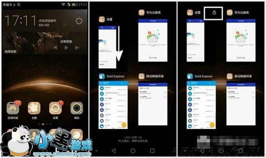 找到你想要锁住的后台,轻轻往下一滑,便可锁住应用,再下滑就能解锁。