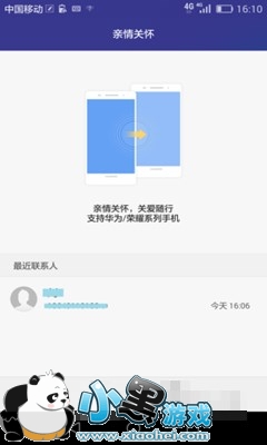 从手机服务里打开远程协助,我们就看到了左边的界面,十分简洁,容易操作,易于上手,老人操作也完全无压力。两个选项在最下边,亲友团打开后就是右图,我们看右边这张图也可以添加亲友的,可以直接跳到联系人。