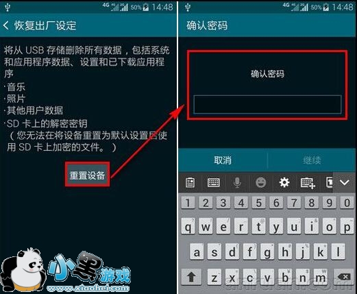 确认好密码以后,点击【继续】,然后全部删除,我们手机使用的个人数据和已经下载的应用都会被删除,但是如果我们使用钛备份就能很快的恢复,如果机友们有更好的软件,也能留言给大家分享一下。