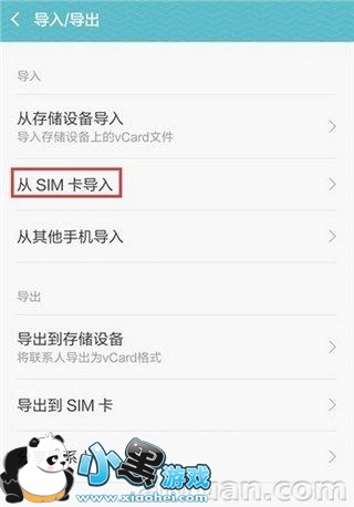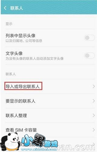 在选择界面下,读者可以选择导入导出联系人选项,点击进入下一级界面。