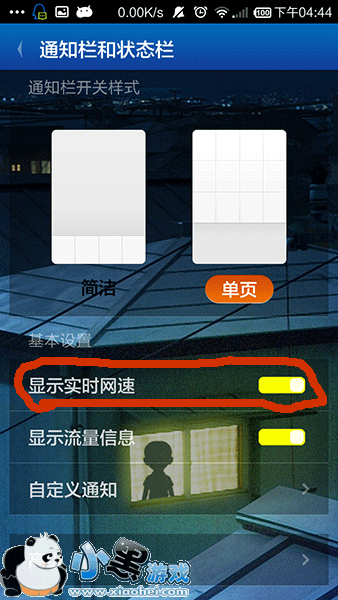 2)接着把【显示实时网速】选项开启,网速就会显示在顶部状态栏上了。