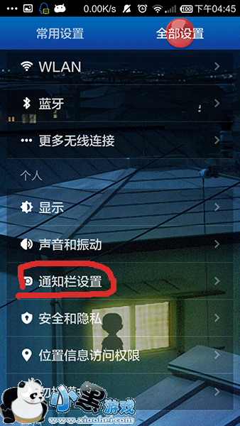 1)打开手机的【设置】菜单,进入设置菜单后点击【通知和状态栏】选项。(如下图)