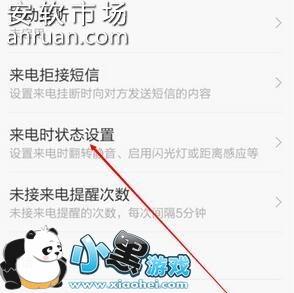 2)接着我们再点击【来电时状态设置】,最后将【来电闪光灯】那栏右边的椭圆往右拉打开即可。(如下图)