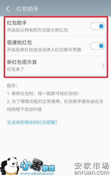 4、进入到红包助手界面以后,将有关红包助手的功能全部打开,然后设置提醒状态,可以设置语音提醒,如下图