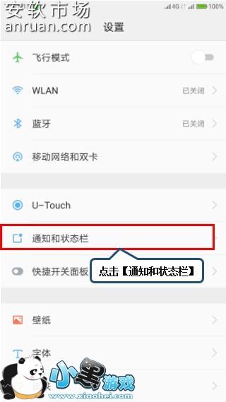 2. 找到并点击【通知和状态栏】
