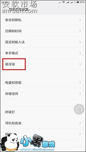 二、进入到设置界面之后,找到【其他高级设置】选项,点击进入即可看到【悬浮球】一栏,如图所示。
