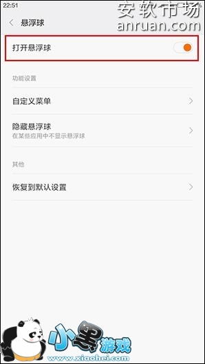 三、最后进入到【悬浮球】设置界面,我们会看到【打开悬浮球】右侧的按钮点击一下即可开启,如图所示。
