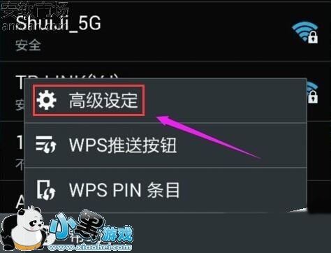 1、进入WIFI网络界面,然后再点击menu按键,然后再点击【高级设置】