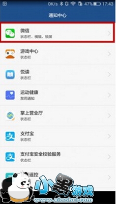 1、我们最常用的应用之一莫过于微信,我们通过华为的系统设置进入,【通知中心】里找到微信: