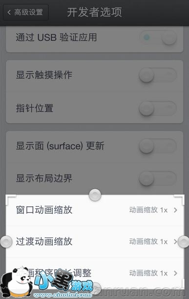 7、为追求更快的操作体验,可以手动改变其动画速度。1X是系统默认动画速度,调至0.5X时理论上比1X快50%,“关闭动画”时手机操作体验最快,10X时速度最慢。