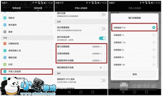 在设置——关于手机里打开开发者选项(点击7次“版本号”),进入开发者选项后找到“绘图”一栏,会看到窗口动画缩放、过渡动画缩放和动画程序时长调整三个选项。手机默认的调整数应该是1x,正常情况应该调整在0.5x,调整过高时手机会有一种动画过渡效果,无形中加重了RAM运行的压力。所以建议把这三项都改为0.5x。