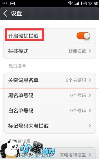7、进入 骚扰拦截 设置界面,即可设置对应的拦截规则。