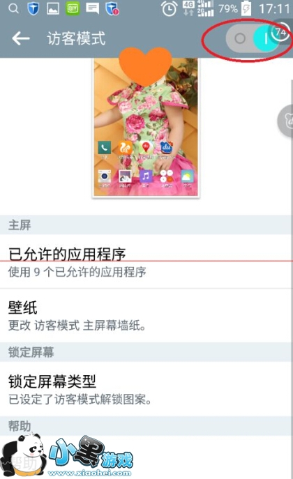 2、点屏幕最右上角的开关,打开"访客模式"这个功能。