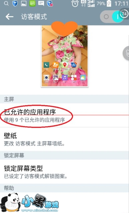 3、接下来我们点“已允许的应用程序”,设置“访客”能够使用的app。勾选完app后,点左上角的<-返回。