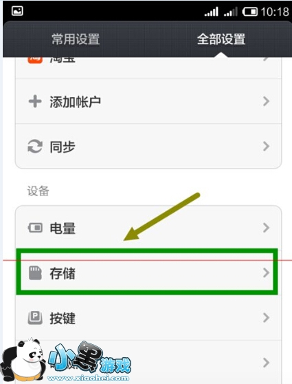 3、移动到中间,找到“存储”按钮,点击进入
