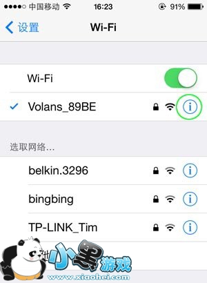 进入设置-WIFI(无线局域网),点击已连接的WIFI网络后面的“感叹号”,进入网络设置界面。