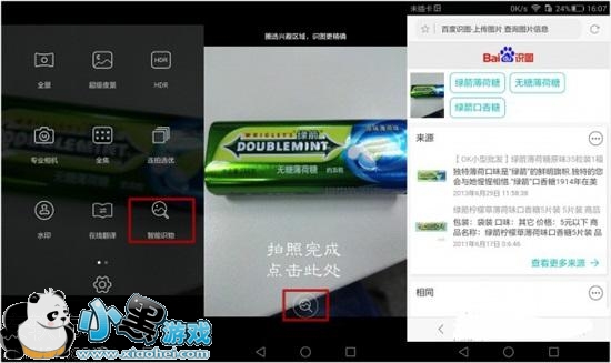 打开相机选择智能识物,对准物品即可在网上看到这是个上面东西,很有意思的一个功能。设置方法:相机——菜单——智能识物。