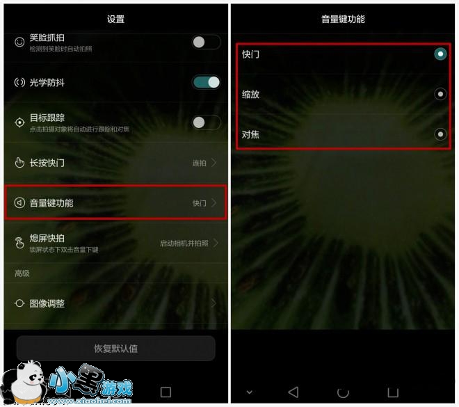 音量键:音量键的功能也可以自定义哦,快门、缩放、对焦都可以选择。