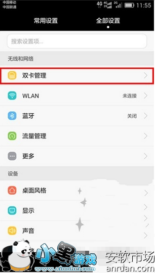 3.开机后进入设置 > 无线和网络 > 双卡管理。