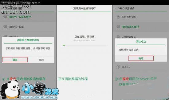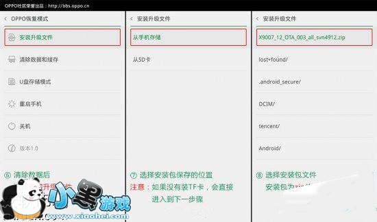 4、刷入的ROM有问题(下载ROM时网络不稳定导致文件损坏等),OPPO R7s刷机失败出错进不了系统如何解决?万一出现了这样的情况,大家只需要进入上面的OPPO恢复模式,选择“U盘存储模式”,然后连接手机和电脑,把重新下载的ROM包复制到手机里,按照刷机步骤重新双清(双清:即清除数据和缓存)后刷入即可。