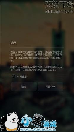 当你全屏浏览图片或者视频时,向上滑动即可快速分享将图片或视频分享给你的好友(本机和接收方的手机需开启蓝牙功能)