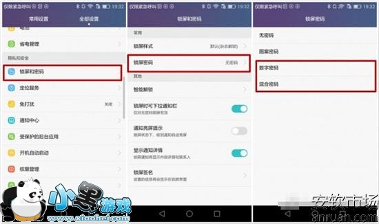 在设置——锁屏和密码——锁屏密码里可以设置5X的锁屏密码,建议选择数字密码或混合密码,为什么呢?下面会告诉你。